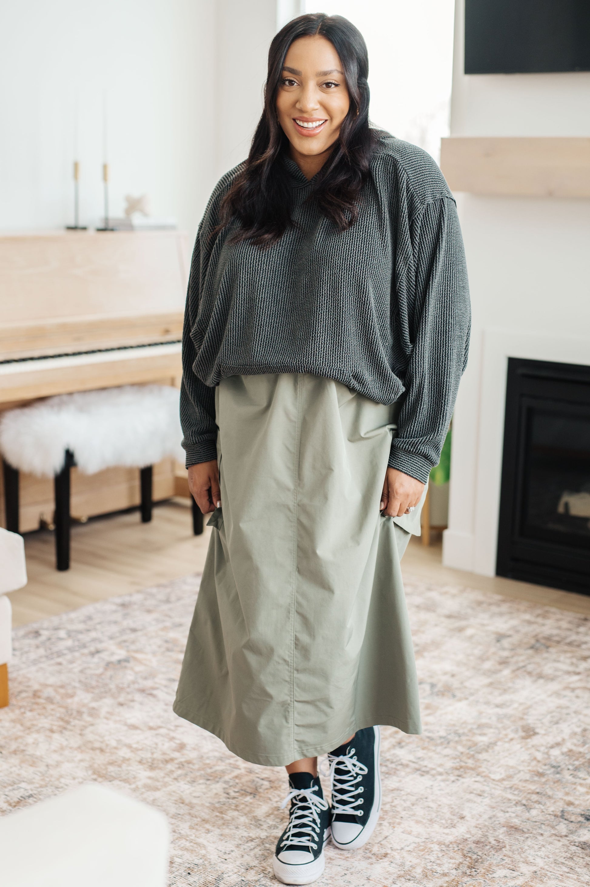 Unlock your style potential with the Explain It Away Cargo Skirt. Made of a mid-weight woven fabric and featuring an elastic drawstring toggle, cargo pockets, and midi length, this vibrant skirt is a must-have for your wardrobe. It's time to make a statement - try it on and experience the difference!