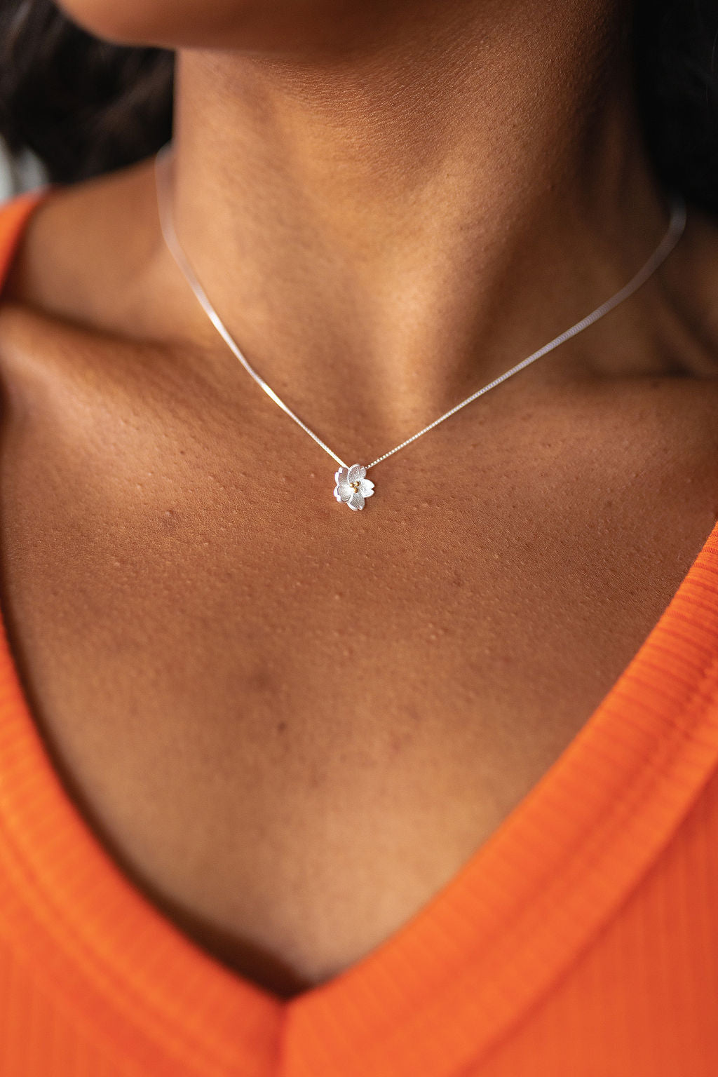 This Fanciful Floral Pendant Necklace is ideal for making a statement. The brushed silver box chain perfectly complements the intricate floral design, making this piece both stylish and sophisticated. Perfect for any special occasion, this necklace is sure to become a favorite part of your jewelry collection.