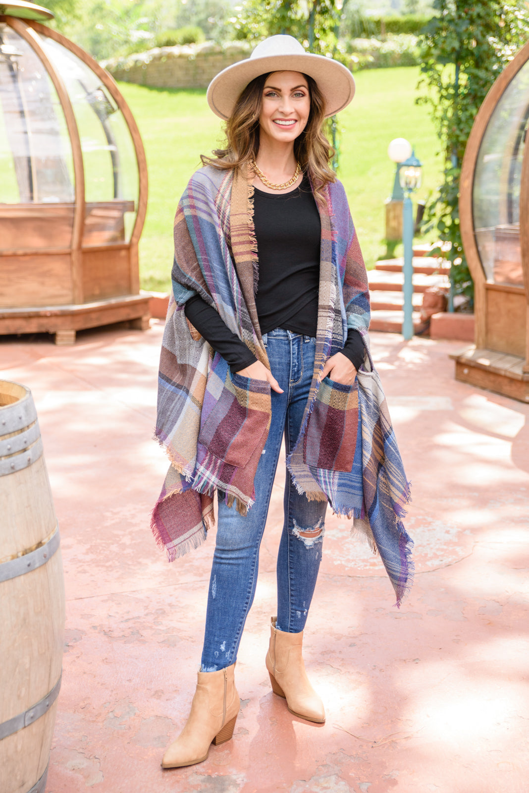- Fab In Plaid Kimono With Pockets