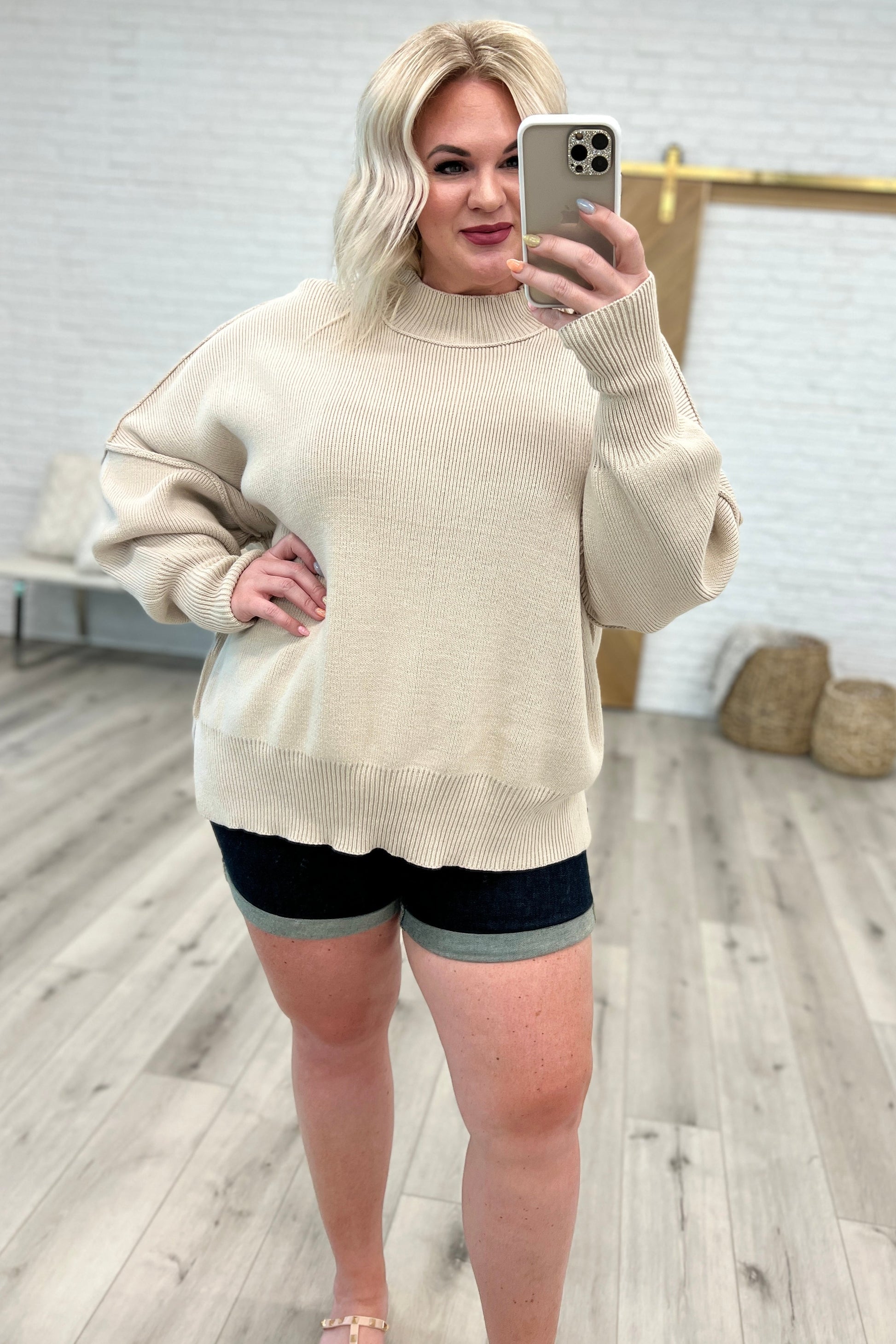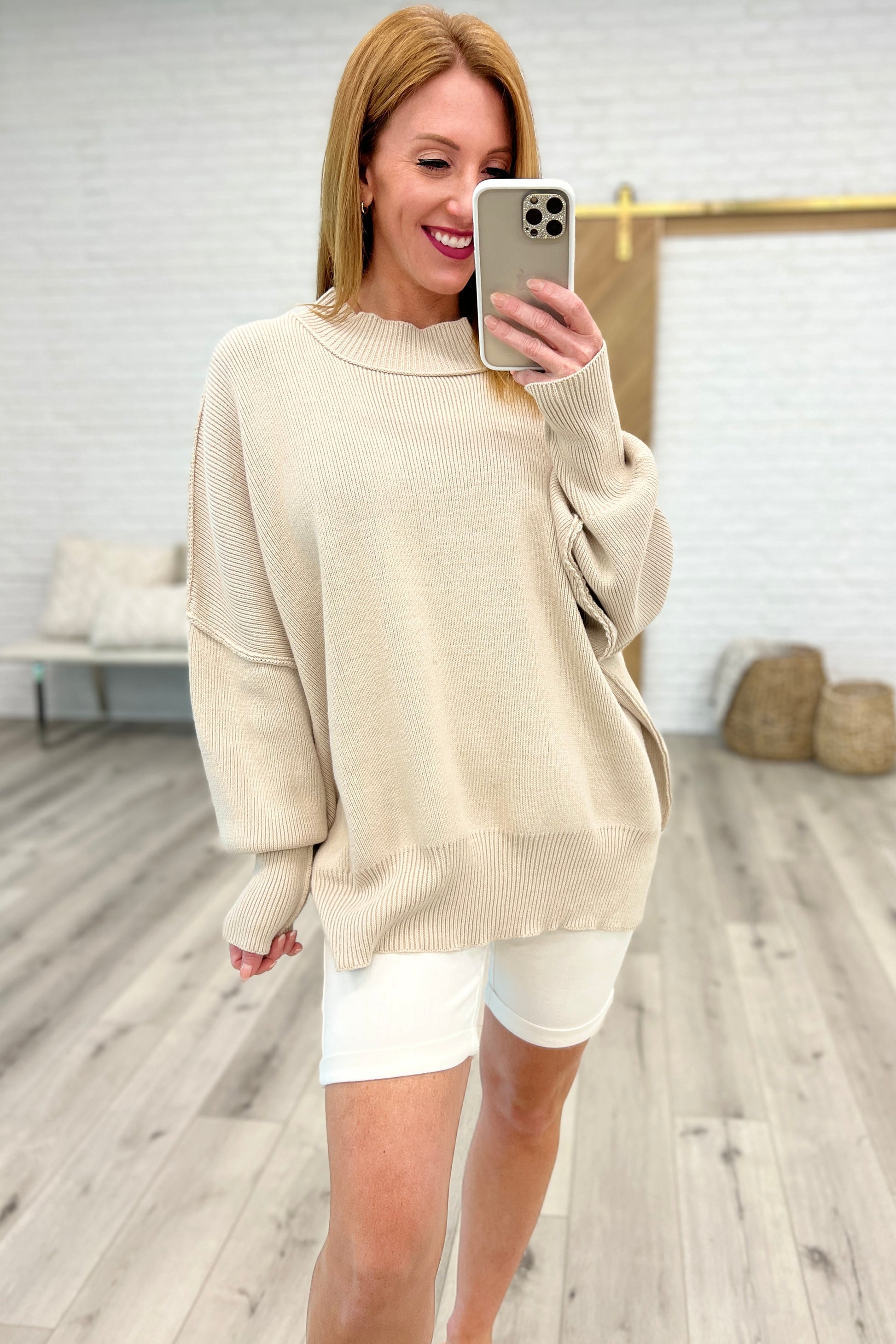 This Margot Side Slit Oversized Sweater features a mock neckline and a relaxed, oversized fit for all-day comfort. Its balloon sleeves, drop shoulder, exposed seams, and side slits offer an edgy, on-trend look while its soft sweater knit provides superior comfort.