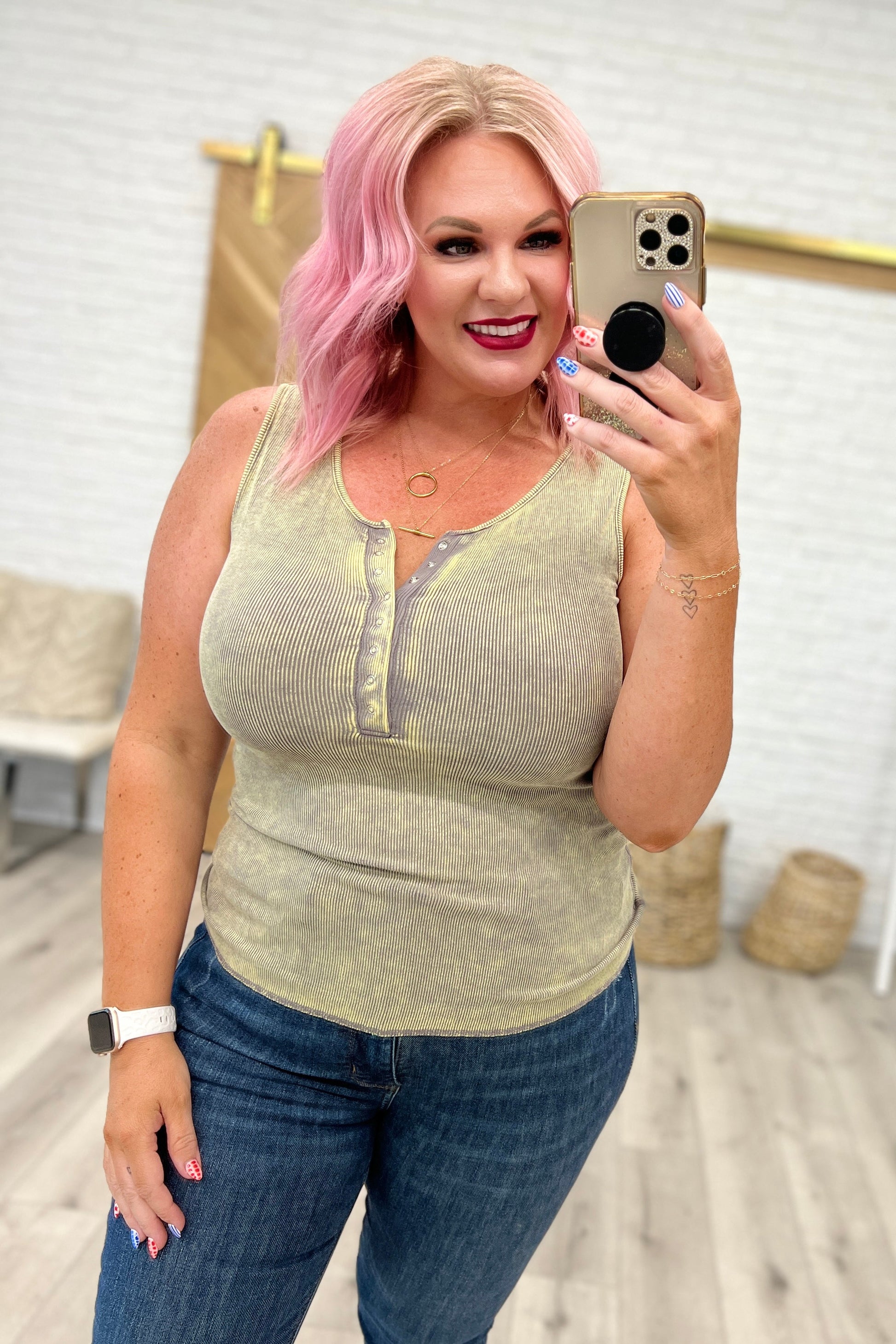 This Mineral Washed Ribbed Henley Tank brings timeless style and comfort to any wardrobe. The snap up henley features a scoop neckline and mineral washed ribbed jersey knit fabric for a comfortable and flattering fitted silhouette. With a timeless style and quality fabric, this top is perfect for any occasion.