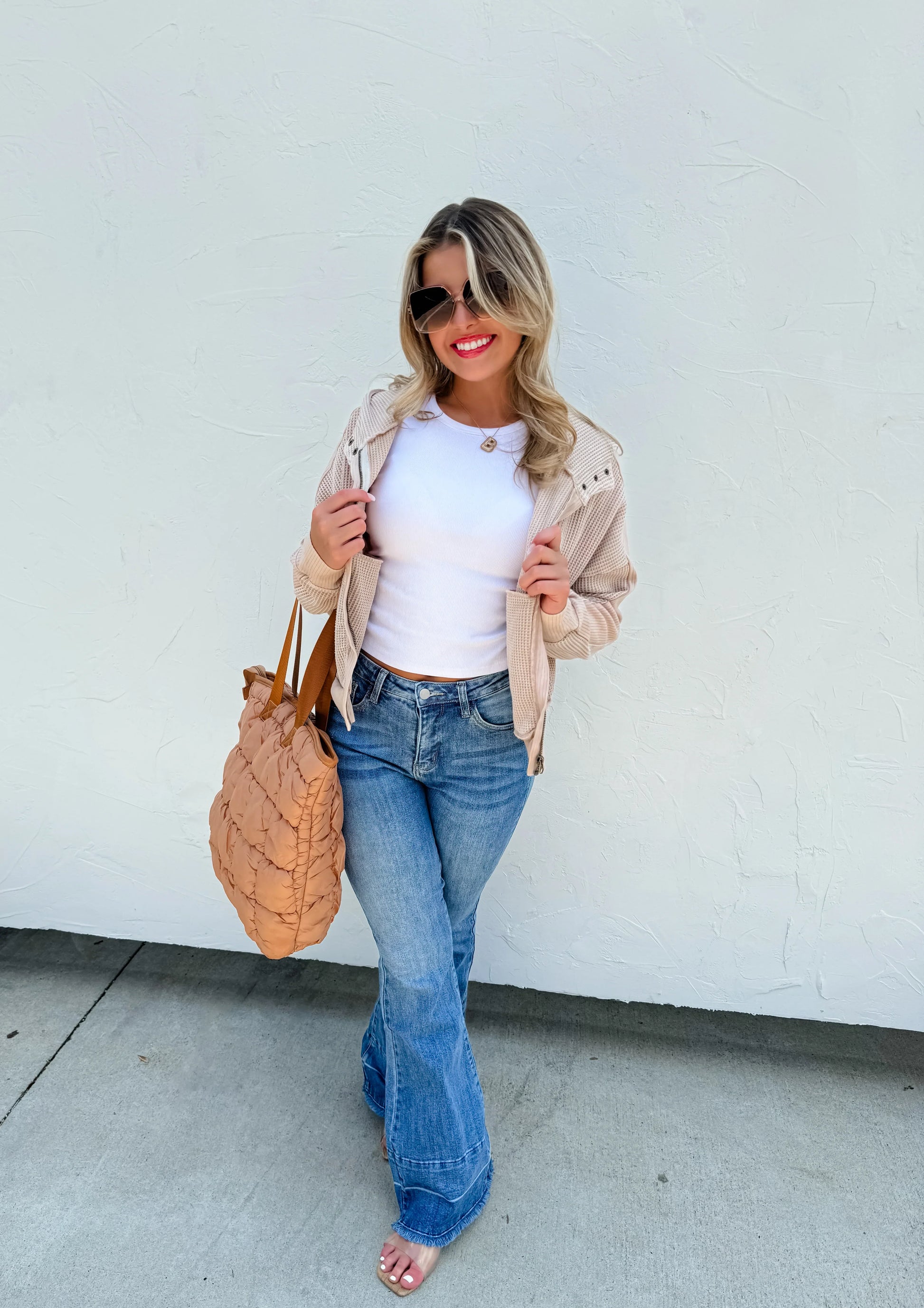This high quality bag features the most trendy puffer/bubble style fabric. The perfect size to fit lots of things inside! Includes an inside pocket zipper with 2 smaller open pockets for cell phones and makeup. Bag also completely zips closed on top.