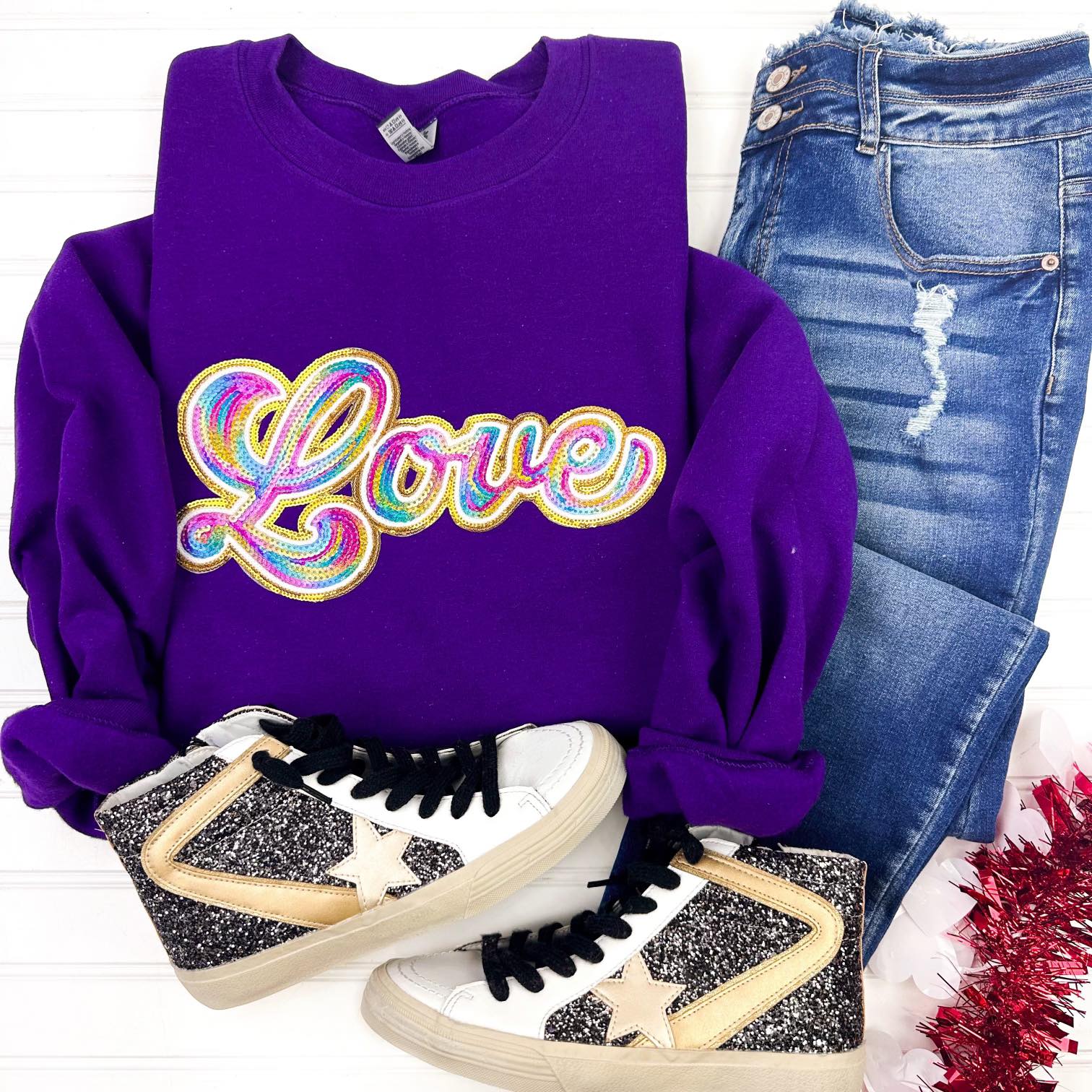The cutest sequin patch sweatshirt to celebrate the season of love!