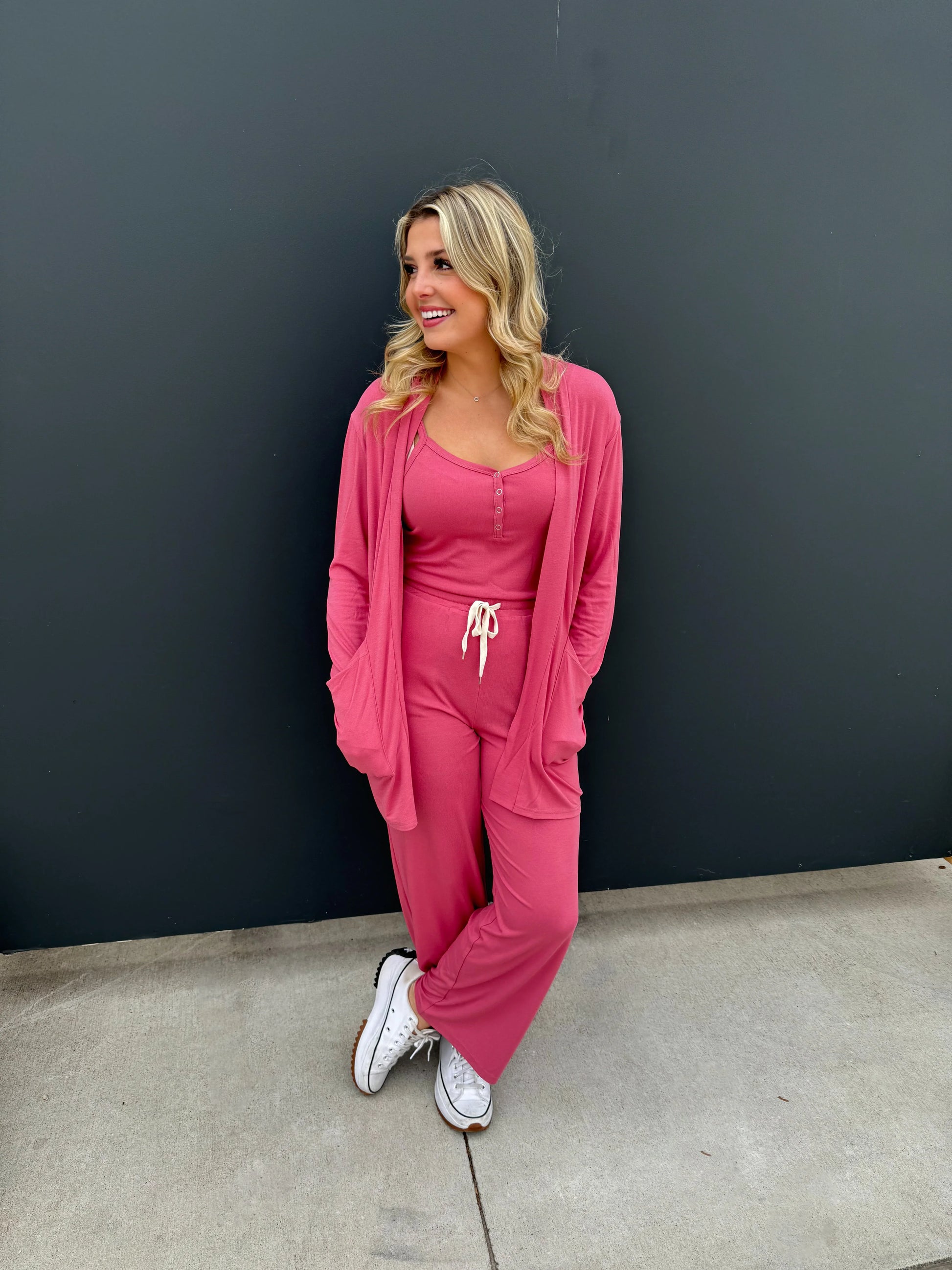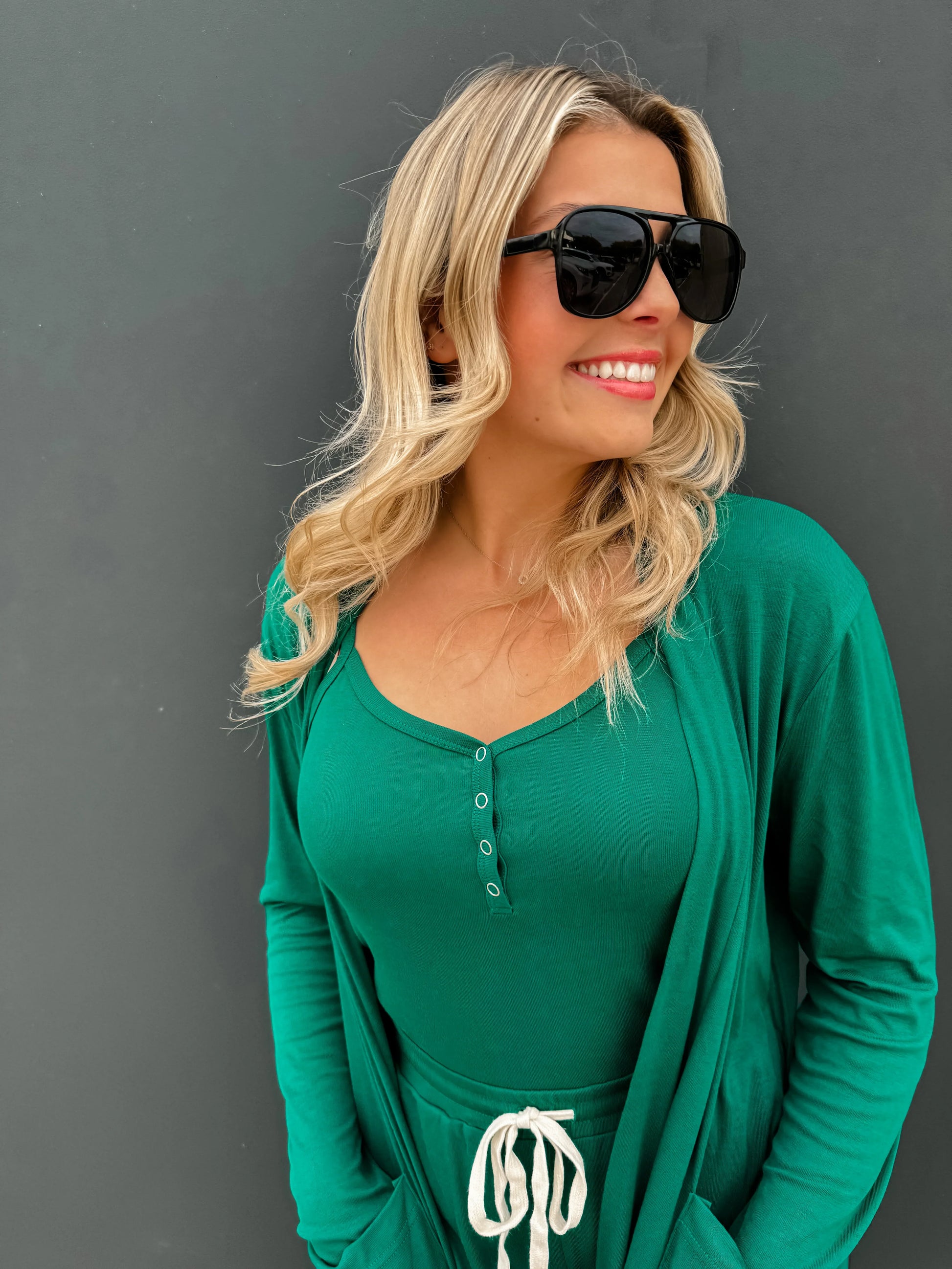 The most epic Romper/Lounge set we have ever made! This 2-piece cardigan/romper set is the ultimate in comfort, stretch and so flattering!