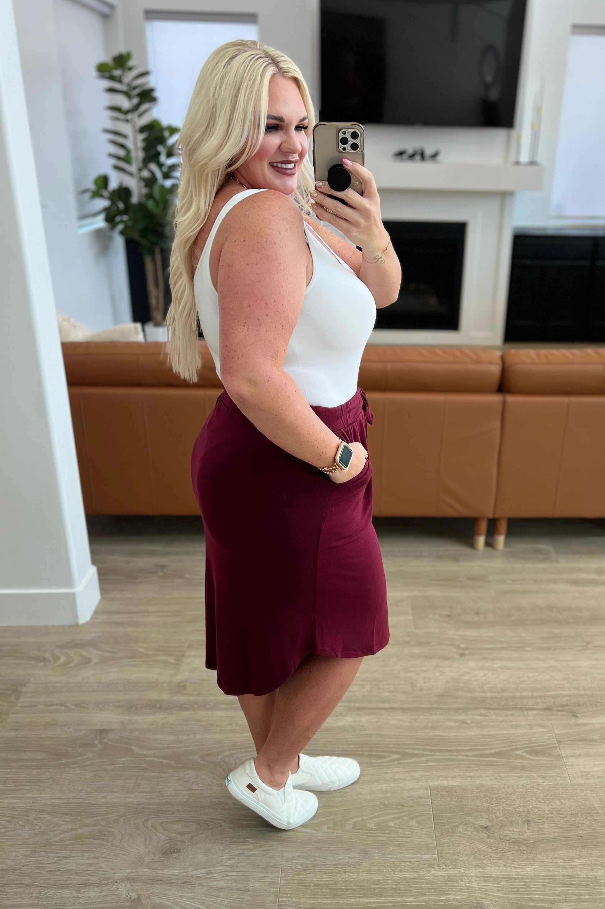Self-Tie Tulip Hem Skirt in Dark Burgundy