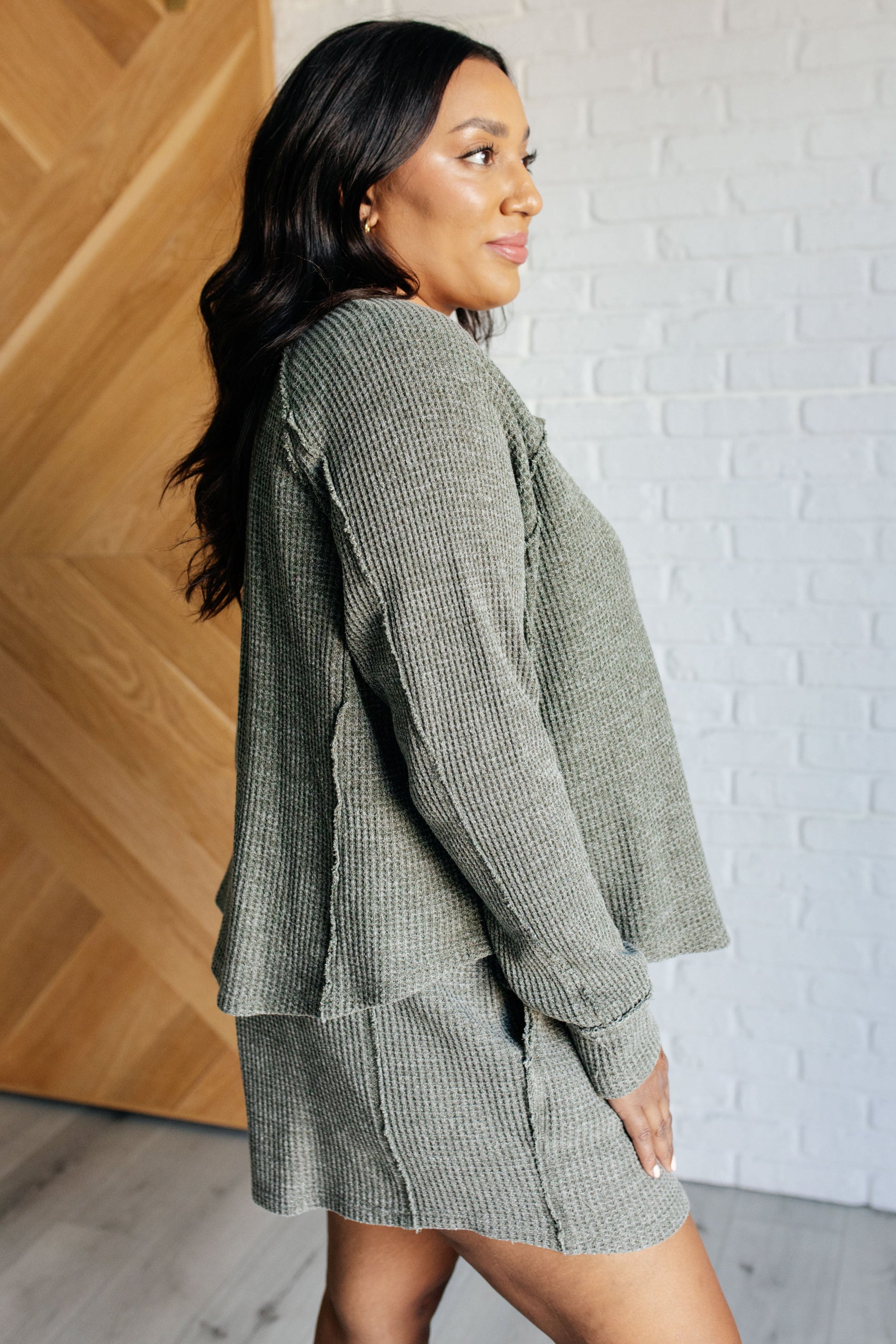 Set Process Mineral Wash Waffle Knit Set in Olive