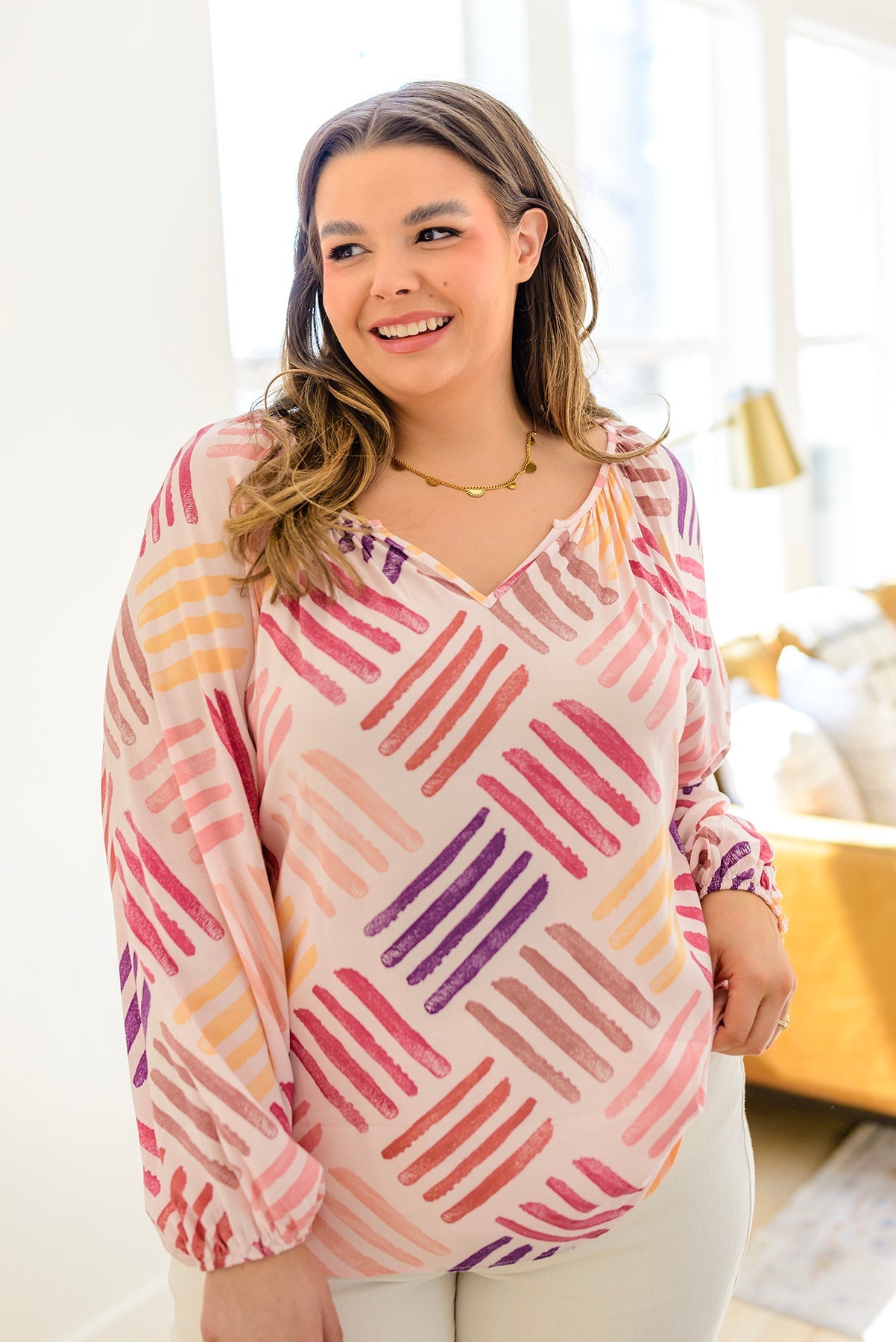 The Stamp Of Happiness Shirt is just what you need on a gloomy day. The colorful alternating striped pattern is a fun and trendy pop of color while the split neckline, long balloon sleeves and rounded hem are timeless details you'll love forever. This shirt is the perfect combo of what your closet it missing!